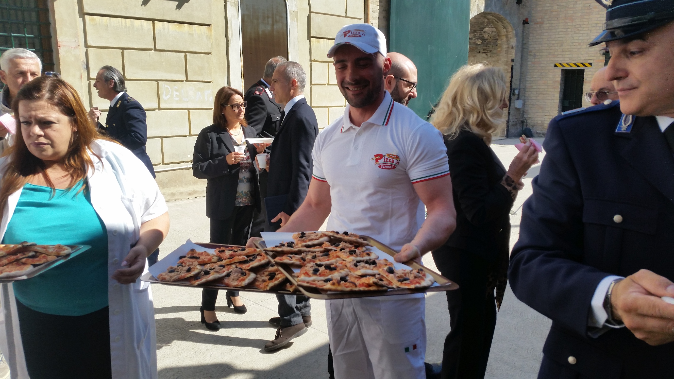 Alla fine il buffet per tutti i presenti, a base di pizza, grazie al supporto della scuola di Pizza.it School di Capodarco, con Umberto Bachetti, direttore della scuola che ha presentato alle autorità intervenute le pizze preparate dagli stessi detenuti.